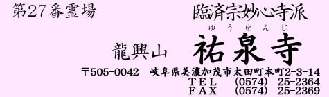 当寺は、臨済宗妙心寺派の禅寺で龍興山祐泉寺と称する。